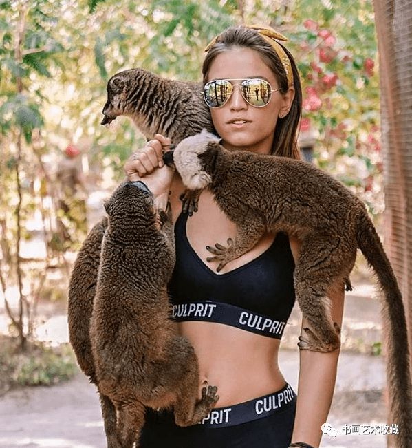 在马达加斯加,莱西与狐猴合影。在将近一年半的环球旅行时间里,莱西靠自己的积蓄生活,同时保持着低开支。